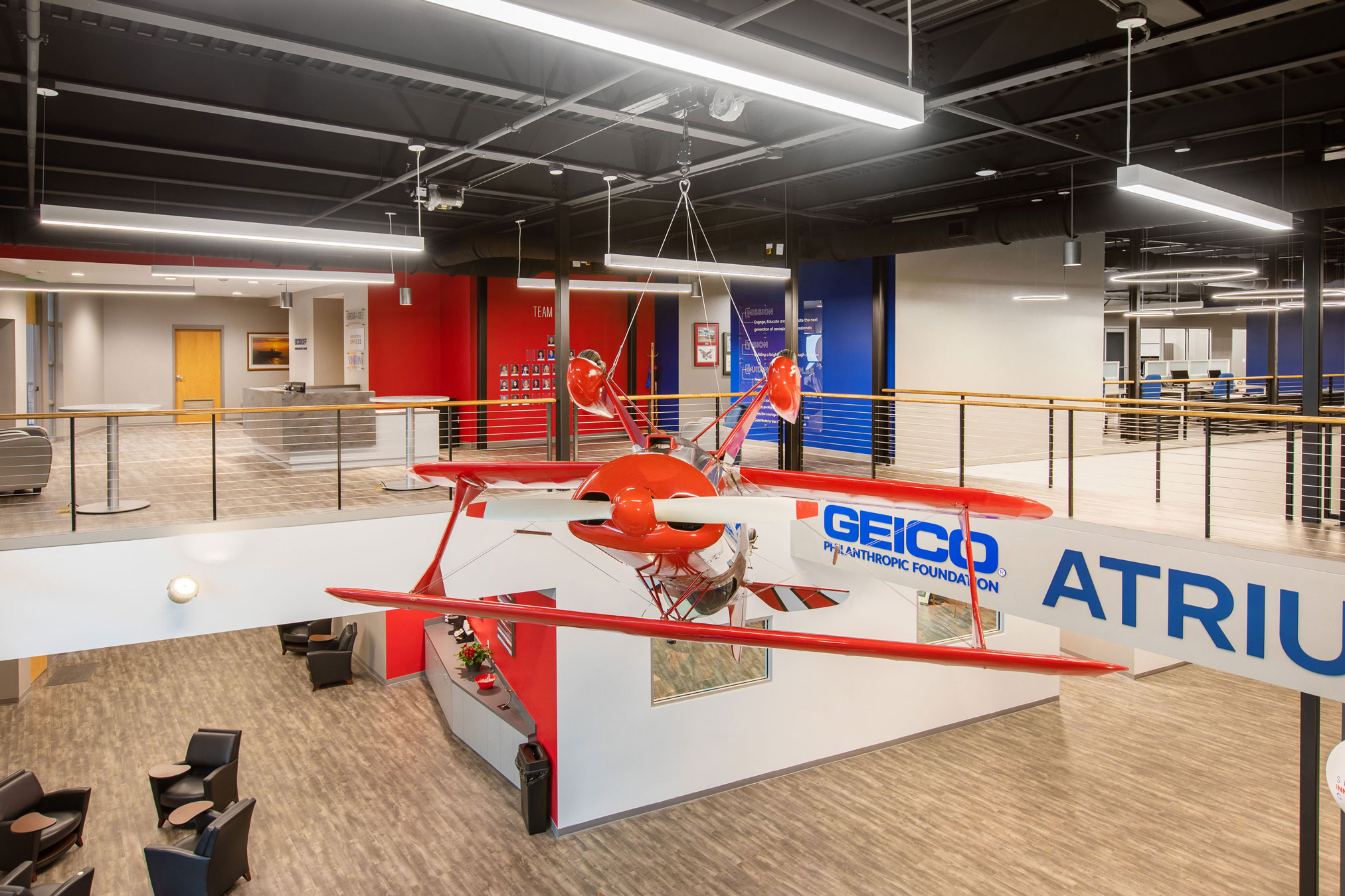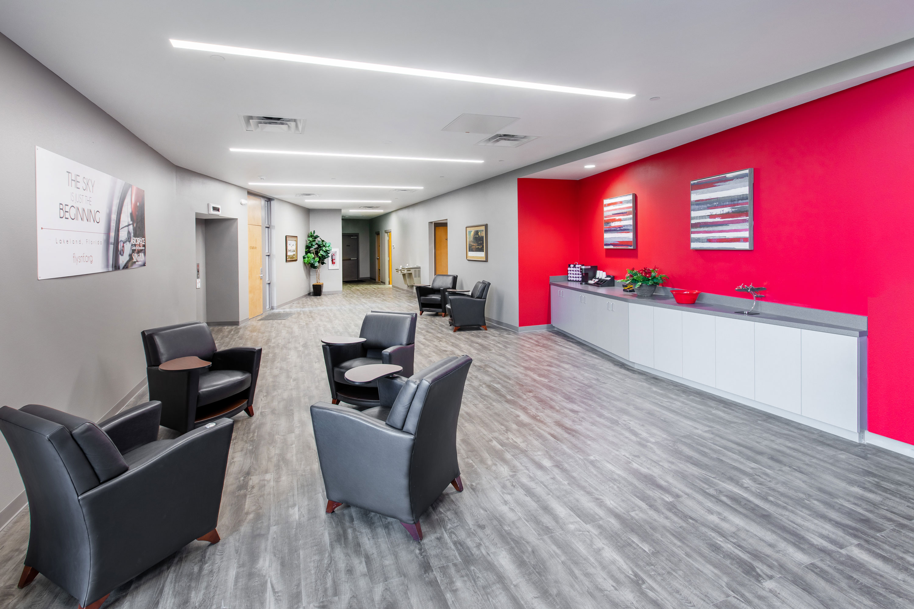 This STEM-focused aerospace education hub is an addition to the 14 building ACE campus at the Lakeland Linder International Airport. The 23,748 SF educational laboratory building includes event and exhibit space, a simulator training lab, a holographic theatre/planetarium, classrooms, and an aerospace resource center.